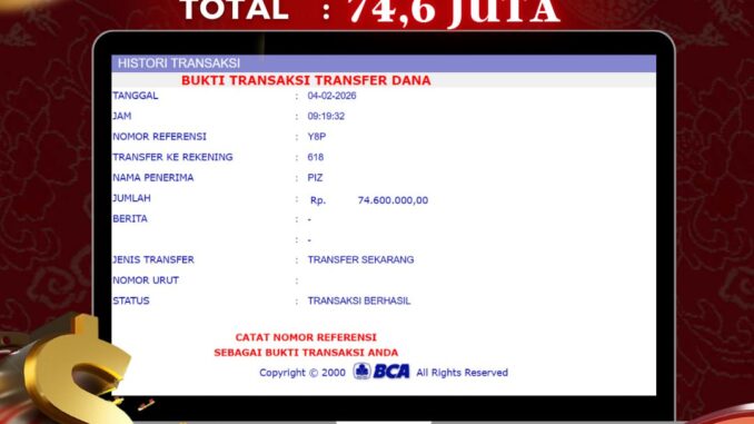 NAGA303 mengucapkan selamat kepada user id : TAM*** yang telah berhasil mendapatkan jackpot pada permainan LIVE CASINO DI BACCARAT. Kemenangan sebesar Rp 74.600.000,-. telah dibayarkan LUNAS oleh pihak naga303 kepada pemilik user id setelah yang bersangkutan mengisi formulir withdraw. Proses pencairan dana berlangsung sangat cepat hanya dalam waktu 6-11 menit sudah berada dalam rekening pemilik user id. Bukti transfer yang dapat anda lihat adalah bukti SAH / VALID yang langsung di dapatkan melalui bukti transaksi dari Bank yang digunakan untuk pengiriman dana pada rekening pemilik user id. Terima kasih kami sampaikan kepada para pengguna setia naga303 yang telah menggunakan situs kami, sebagai Bandar Terpercaya yang pastinya membayar semua kemenangan member hingga lunas. Apakah Naga303 PENIPU ? Reputasi “NAGA303 TERPERCAYA” sudah sangat melekat. puluhan hingga ratusan ribu pengguna setia NAGA303 tetap menggunakan situs terbesar dan terbaik di Indonesia ini. Hapus rasa was-was dan khawatir anda, kemenangan anda berapapun PASTI dibayarkan hingga lunas.
