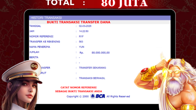 NAGA303 mengucapkan selamat kepada user id : RAK*** yang telah berhasil mendapatkan jackpot pada permainan ARCADE DI SPACEMAN. Kemenangan sebesar Rp 80.000.000,-. telah dibayarkan LUNAS oleh pihak naga303 kepada pemilik user id setelah yang bersangkutan mengisi formulir withdraw. Proses pencairan dana berlangsung sangat cepat hanya dalam waktu 6-11 menit sudah berada dalam rekening pemilik user id. Bukti transfer yang dapat anda lihat adalah bukti SAH / VALID yang langsung di dapatkan melalui bukti transaksi dari Bank yang digunakan untuk pengiriman dana pada rekening pemilik user id. Terima kasih kami sampaikan kepada para pengguna setia naga303 yang telah menggunakan situs kami, sebagai Bandar Terpercaya yang pastinya membayar semua kemenangan member hingga lunas. Apakah Naga303 PENIPU ? Reputasi “NAGA303 TERPERCAYA” sudah sangat melekat. puluhan hingga ratusan ribu pengguna setia NAGA303 tetap menggunakan situs terbesar dan terbaik di Indonesia ini. Hapus rasa was-was dan khawatir anda, kemenangan anda berapapun PASTI dibayarkan hingga lunas.