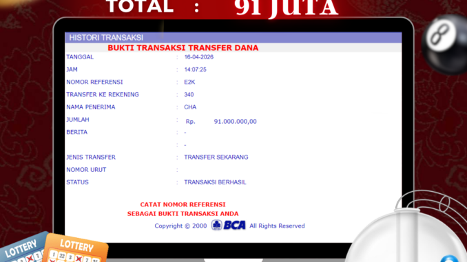 MEMBER NAGA303 MENERIMA PELUNASAN KEMENANGAN JACKPOT TOGEL DI SYDNEY LOTTO Rp 91.000.000,- LUNAS