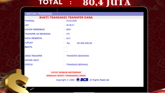 NAGA303 mengucapkan selamat kepada user id : TON*** yang telah berhasil mendapatkan jackpot pada permainan LIVE CASINO DI ROULETTE. Kemenangan sebesar Rp 80.400.000,-. telah dibayarkan LUNAS oleh pihak naga303 kepada pemilik user id setelah yang bersangkutan mengisi formulir withdraw. Proses pencairan dana berlangsung sangat cepat hanya dalam waktu 6-11 menit sudah berada dalam rekening pemilik user id. Bukti transfer yang dapat anda lihat adalah bukti SAH / VALID yang langsung di dapatkan melalui bukti transaksi dari Bank yang digunakan untuk pengiriman dana pada rekening pemilik user id. Terima kasih kami sampaikan kepada para pengguna setia naga303 yang telah menggunakan situs kami, sebagai Bandar Terpercaya yang pastinya membayar semua kemenangan member hingga lunas. Apakah Naga303 PENIPU ? Reputasi “NAGA303 TERPERCAYA” sudah sangat melekat. puluhan hingga ratusan ribu pengguna setia NAGA303 tetap menggunakan situs terbesar dan terbaik di Indonesia ini. Hapus rasa was-was dan khawatir anda, kemenangan anda berapapun PASTI dibayarkan hingga lunas.