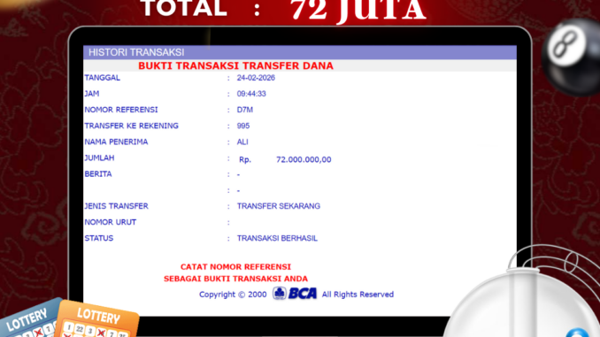 NAGA303 mengucapkan selamat kepada user id : WAN*** yang telah berhasil mendapatkan jackpot pada permainan TOGEL DI JOWOPOOLS. Kemenangan sebesar Rp 72.000.000,-. telah dibayarkan LUNAS oleh pihak naga303 kepada pemilik user id setelah yang bersangkutan mengisi formulir withdraw. Proses pencairan dana berlangsung sangat cepat hanya dalam waktu 6-11 menit sudah berada dalam rekening pemilik user id. Bukti transfer yang dapat anda lihat adalah bukti SAH / VALID yang langsung di dapatkan melalui bukti transaksi dari Bank yang digunakan untuk pengiriman dana pada rekening pemilik user id. Terima kasih kami sampaikan kepada para pengguna setia naga303 yang telah menggunakan situs kami, sebagai Bandar Terpercaya yang pastinya membayar semua kemenangan member hingga lunas. Apakah Naga303 PENIPU ? Reputasi “NAGA303 TERPERCAYA” sudah sangat melekat. puluhan hingga ratusan ribu pengguna setia NAGA303 tetap menggunakan situs terbesar dan terbaik di Indonesia ini. Hapus rasa was-was dan khawatir anda, kemenangan anda berapapun PASTI dibayarkan hingga lunas.